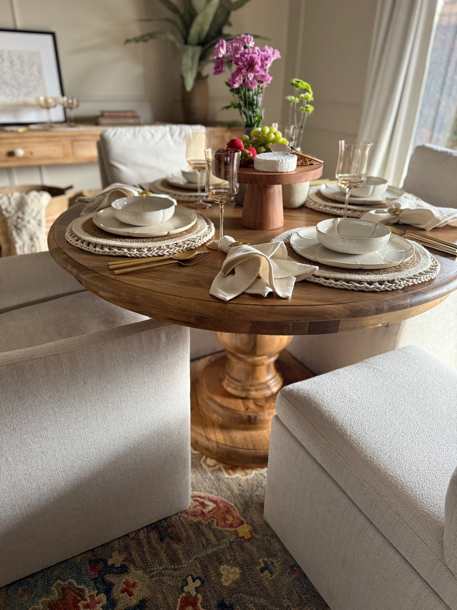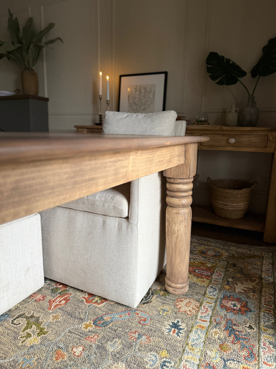 Bring originality into your room with hand made solid wood tables. We offer dining, console, coffee, and end tables all designed by Julie.